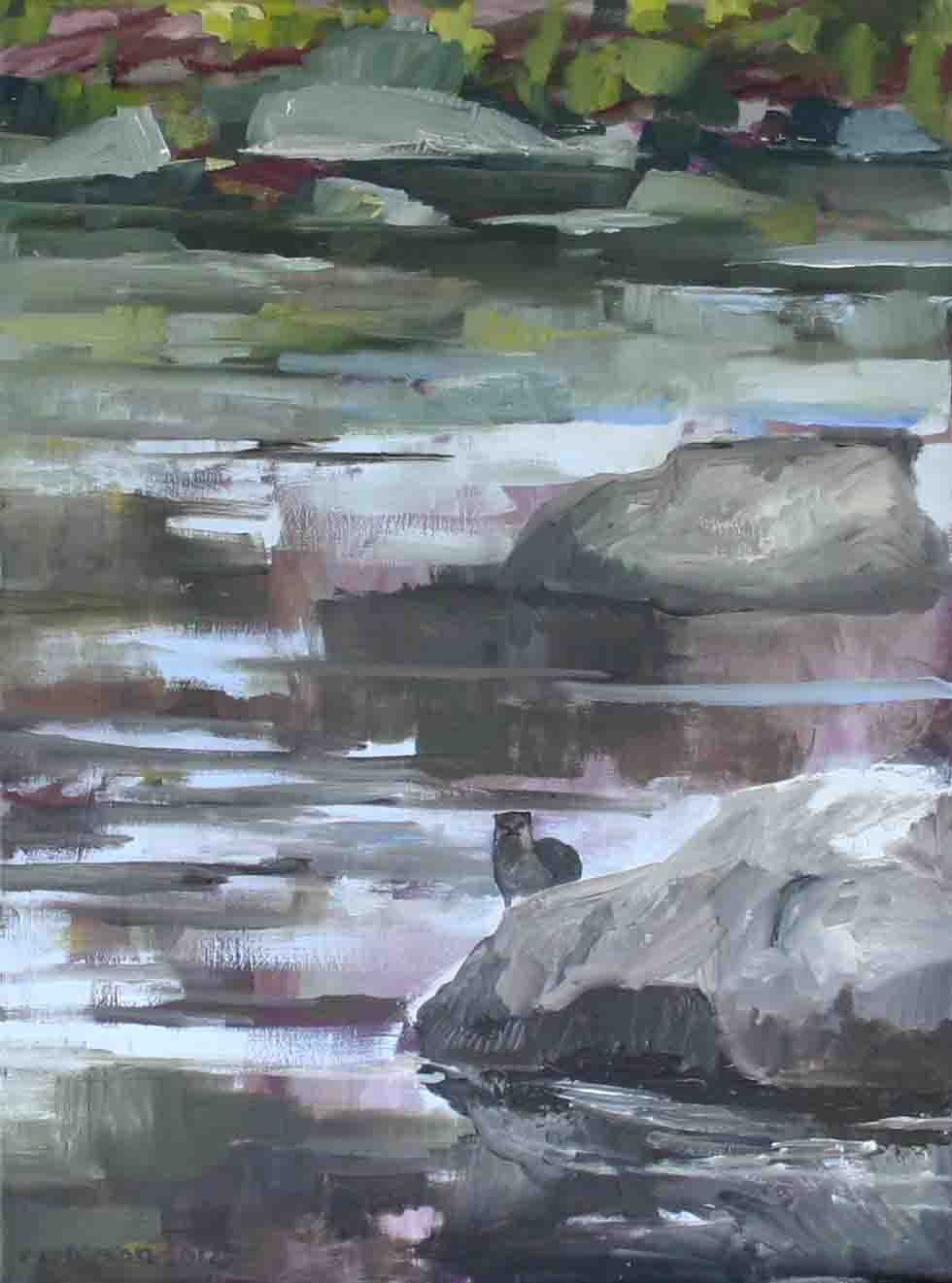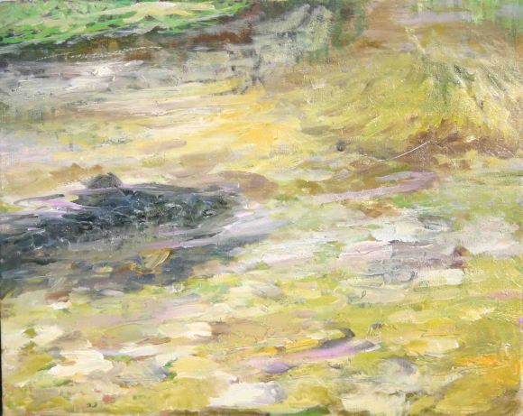 In the summer, I was asked to submit for the above exhibition for Alumni, Staff and Students of the Academy. It is always rewarding to learn when your work attracts some attention, and an impressionistic picture of a trout seems to have found favour with a purchaser. Here is a similar picture I have done recently. I am looking to describe an impression in brilliant sunshine.