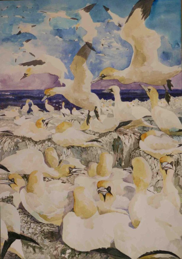 A great artist who inspired me to do better wildlife based art is called John Busby, who is an Academician of the Scottish Royal Academy. I, along with a large number of other artists, have benefitted from his courses in Scotland where support has been available from several of the people he has mentored over about 30 years. Here is one piece of work which i did last year as a result of one of the visits he organised to the Bass Rock in the Firth of the Forth.