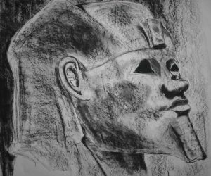 The Academy has asked me to do all sorts of things I would never have done before. An example is this drawing, about 2meters square, titled “Monumentality”. The teacher was looking for a sense of scale and mass; and an overwhelming presence. It was done from a series of smaller drawings I made in the Egyptology department of the British Museum.